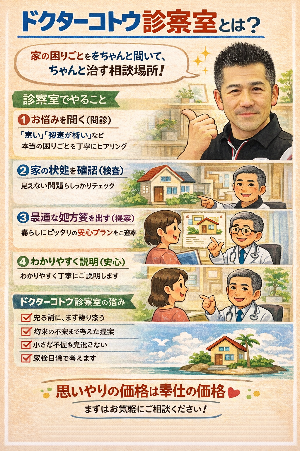 住まいのお困りごとは、ぜひ ドクターコトウ診察室へお気軽にご相談ください。